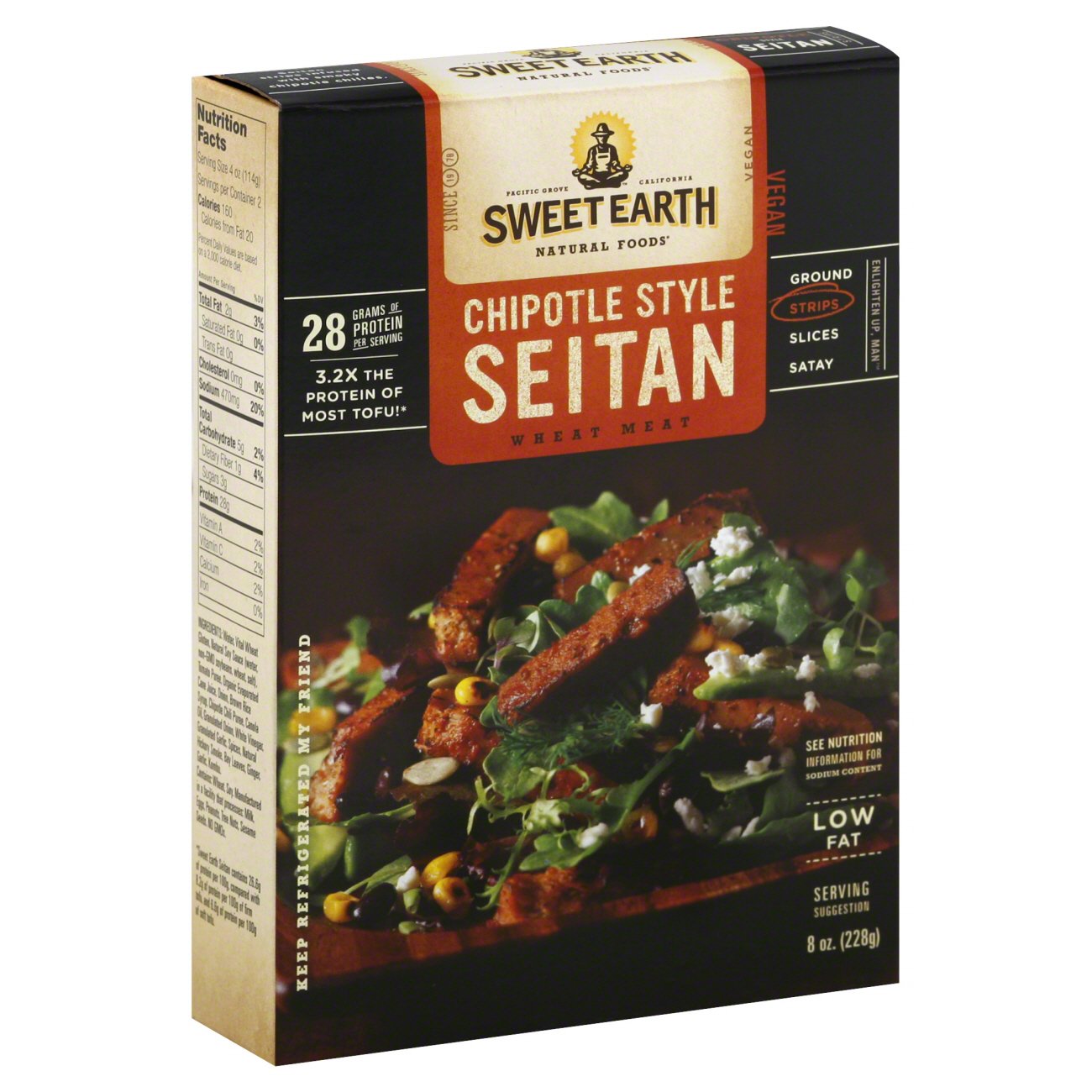 Sweet Earth Chipotle Seitan Nutrition : Sweet Earth Traditional Seitan Strips Reviews Abillion - There are 150 calories in 3 oz (85 g) of sweet earth chipotle style seitan.. 15% fat, 24% carbs, 61% protein. 4.29 with 7 ratings 0 followers. 1 lb (453.592 g) 1 kg. The nutritional value of a suggested serving of chipotle style seitan includes 0 mg of cholesterol, 0 mg of sodium, 9 grams of carbohydrates, 1 grams of dietary fiber, 2 grams of sugar and 30 grams of proteins. Water, vital wheat gluten, soy sauce (2) (water, soybeans (2), wheat, salt, alcohol (1) preservative), tomato …